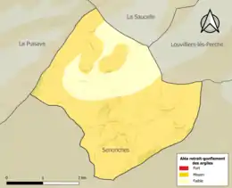 Le retrait-gonflement des sols argileux est susceptible d'engendrer des dommages importants aux bâtiments en cas d’alternance de périodes de sécheresse et de pluie. 75,1 % de la superficie communale est en aléa moyen ou fort (52,8 % au niveau départemental et 48,5 % au niveau national). Sur les 205 bâtiments dénombrés sur la commune en 2019, 166 sont en aléa moyen ou fort, soit 81 %, à comparer aux 70 % au niveau départemental et 54 % au niveau national. Une cartographie de l'exposition du territoire national au retrait gonflement des sols argileux est disponible sur le site du BRGM[18],[Carte 2].