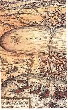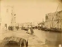 Commandant l'accès au lac de Tunis, La Goulette joue pendant des siècles un rôle militaire important. Occupée par les Turcs, elle est conquise en 1535 par l'armée de Charles Quint (qui compte 400 vaisseaux et 30 000 hommes) lors de la bataille de Tunis[15]. La forteresse de la Carraca, qui existe toujours, est édifiée par les Espagnols puis agrandie par les Turcs lorsque, en 1574, ils reprennent la ville[16]. La population goulettoise est, au départ, composée exclusivement de Turcs et de Maures. Mais la cité se développe à partir du milieu du XVIIIe siècle en tant que quartier, par extension, de la capitale à la suite de l'arrivée, d'abord modeste, d'immigrés provenant de Malte et de Sicile (en particulier des provinces de Palerme, Trapani et Agrigente) attirés par les perspectives de travail liées aux activités maritimes et portuaires.