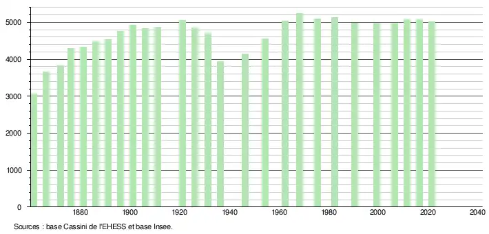 , la commune comptait 5 026 habitants. L'évolution du nombre d'habitants est connue à travers les recensements de la population effectués dans la commune depuis 1793. Une réforme du mode de recensement permet à l'Insee de publier annuellement les populations légales des communes à partir de 2006. Pour Fraisses, commune de moins de 10 000 habitants, les recensements ont lieu tous les cinq ans, les populations légales intermédiaires sont quant à elles estimées par calcul[22]. Les populations légales des années 2007, 2012, 2017 correspondent à des recensements exhaustifs[23].