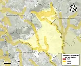 Le retrait-gonflement des sols argileux est susceptible d'engendrer des dommages importants aux bâtiments en cas d’alternance de périodes de sécheresse et de pluie[10]. 25,7 % de la superficie communale est en aléa moyen ou fort (27 % au niveau départemental et 48,5 % au niveau national métropolitain)[11]. Depuis le , en application de la loi ÉLAN, différentes contraintes s'imposent aux vendeurs, maîtres d'ouvrages ou constructeurs de biens situés dans une zone classée en aléa moyen ou fort[Note 3],[12].