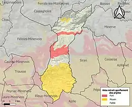 Le retrait-gonflement des sols argileux est susceptible d'engendrer des dommages importants aux bâtiments en cas d’alternance de périodes de sécheresse et de pluie. 53,1 % de la superficie communale est en aléa moyen ou fort (59,3 % au niveau départemental et 48,5 % au niveau national). Sur les 484 bâtiments dénombrés sur la commune en 2019, 443 sont en aléa moyen ou fort, soit 92 %, à comparer aux 85 % au niveau départemental et 54 % au niveau national. Une cartographie de l'exposition du territoire national au retrait gonflement des sols argileux est disponible sur le site du BRGM[28],[Carte 2].