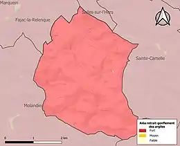 Le retrait-gonflement des sols argileux est susceptible d'engendrer des dommages importants aux bâtiments en cas d’alternance de périodes de sécheresse et de pluie. La totalité de la commune est en aléa moyen ou fort (75,2 % au niveau départemental et 48,5 % au niveau national). Sur les 52 bâtiments dénombrés sur la commune en 2019, 52 sont en aléa moyen ou fort, soit 100 %, à comparer aux 94 % au niveau départemental et 54 % au niveau national. Une cartographie de l'exposition du territoire national au retrait gonflement des sols argileux est disponible sur le site du BRGM[23],[Carte 3].