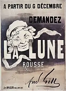 La Lune rousse est lancée le 10 décembre 1876. Les caricatures dessinées par Gill y sont initialement publiées en première page, comme dans l'ancienne formule de L’Éclipse, avant d'occuper toute la largeur de la double page centrale dès le 11 février 1877.