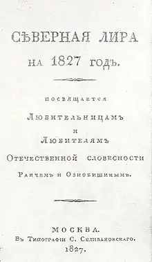 La Lyre du Nord (Северная лира, severnaia lira) est un almanach littéraire russe qui fut édité par Semion Raïtch, à son retour d'un préceptorat en Ukraine, et Dmitri Oznobichine à Moscou en 1827.