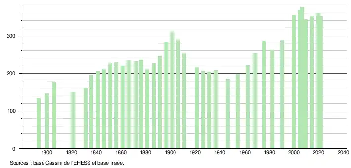 - Fiches Insee - Populations légales de la commune pour les années 2006, 2007, 2008, 2009, 2010, 2011, 2012, 2013, 2014, 2015, 2016, 2017, 2018, 2019, 2020 et 2021.