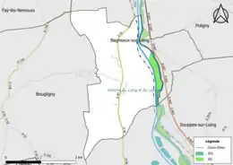 Le territoire communal de Madeleine-sur-Loing comprend une ZNIEFF de type 1[Note 3],[33],[Carte 2], le « Marais de la Madeleine » (22,49 ha), couvrant 2 communes du département[34]. , et une ZNIEFF de type 2[Note 4],[33], la « vallée du Loing entre Nemours et Dordives » (1 059,63 ha), couvrant 7 communes dont 1 dans le Loiret et 6 en Seine-et-Marne[35].