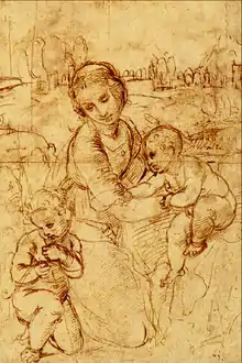 D'inspiration léonardesque sont aussi le terrain sombre, parsemé de plantes sélectionnées avec soin, le rendu atmosphérique du paysage en arrière-plan se perdant dans les vapeurs du lointain ainsi que les visages de saint Jean et du Christ enfants par le sfumato qui les enveloppe et par les traits somatiques issus du studio dal vero.