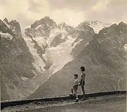 Les glaciers de la Meije en septembre 1950 en aval du col du Lautaret sur la route en direction de La Grave. |