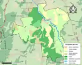 L'occupation des sols de la commune, telle qu'elle ressort de la base de données européenne d’occupation biophysique des sols Corine Land Cover (CLC), est marquée par l'importance des territoires agricoles (66,6 % en 2018), une proportion identique à celle de 1990 (66,6 %). La répartition détaillée en 2018 est la suivante : prairies (46,5 %), forêts (29,3 %), terres arables (13,7 %), zones agricoles hétérogènes (6,4 %), milieux à végétation arbustive et/ou herbacée (2,4 %), zones urbanisées (1,7 %)[16].
