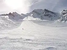 Vue depuis la piste de ski du Clot de la station de la Norma au nord du sommet de la Norma au fond du vallon.