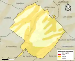 Le retrait-gonflement des sols argileux est susceptible d'engendrer des dommages importants aux bâtiments en cas d’alternance de périodes de sécheresse et de pluie. 57,7 % de la superficie communale est en aléa moyen ou fort (52,8 % au niveau départemental et 48,5 % au niveau national). Sur les 182 bâtiments dénombrés sur la commune en 2019, 125 sont en aléa moyen ou fort, soit 69 %, à comparer aux 70 % au niveau départemental et 54 % au niveau national. Une cartographie de l'exposition du territoire national au retrait gonflement des sols argileux est disponible sur le site du BRGM[19],[Carte 2].