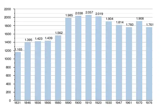 Les chiffres des années 1831 à 1970 tiennent compte des chiffres des anciennes communes fusionnées.