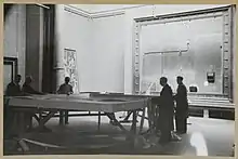 Stockage de peintures grand format dans la salle des chevaliers du château Radboud, 1939 à 1940.