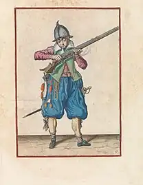 ![]() | Jan Claesen Leijdeckers, mousquetaire | ![]() | Barent Harmansen Bolhamer, piquier avec une barette noire à plumes |