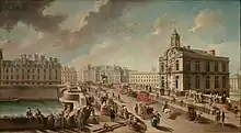 La Samaritaine était le nom d'une pompe à eau située sur le pont Neuf dont l'existence remontait à Henri IV qui en demanda les plans au flamand Jean Lintlaër. Ce fut la première machine élévatrice d'eau construite dans Paris qui permettait de fournir, en eau, le quartier du Louvre. Elle fut reconstruite par Robert de Cotte entre 1712 et 1719, puis rénovée par Soufflot et Gabriel.