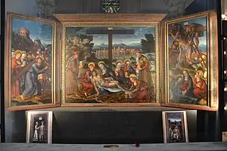 | Alias | ![]() Alias du blason de Tour-du-Pin (La) De gueules à une tour d'argent maçonnée de sable et sommée d'une pomme de pin d'or[59],[60]. |