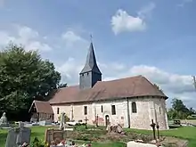 Inscrit MH (1971)[36]. Cette église, placée sous le patronage du prieur de Bourg-Achard, a été édifiée au Xe siècle-XIe siècle et agrandie au XIIe siècle. La porte sud date du XVe siècle et le lambris de couvrement de la nef du XVIe siècle. Murs de la nef avec silex disposés en opus spicatum (fin Xe siècle-début XIe siècle)[37] ; - Une croix de cimetière du XVe siècle ou XVIe siècle