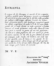 | Dédicataire | Vettor Delfino (ancien élève violoniste, et mécène de la noblesse vénitienne) |