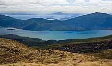 Vue du lac Rotoaira, dominé par le mont Tongariro. | ||