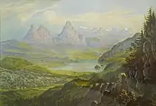 Vue du lac de Lauerz à droite et du lac des Quatre-Cantons à gauche depuis le petit Mythen | ||
