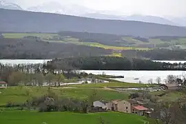 Le lac est principalement situé sur les territoires des communes de Montbel et Léran, dans l'est du département de l'Ariège, et s'étend également sur celui de la commune de Chalabre, dans le département de l'Aude. Le barrage est situé sur le territoire communal de Montbel, sur le cours de la Trière[3], un petit affluent de l'Hers-Vif.