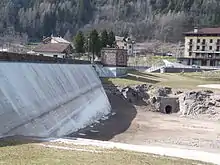 En hiver, le niveau d'eau du lac est abaissé de plusieurs mètres. Lorsque le niveau d'eau est abaissé, le début du pipeline devient visible. Quelques troncs sont encore visibles, toujours attachés au sol, qui constituaient les arbres de la forêt présents dans la région avant la barrière artificielle du lac.