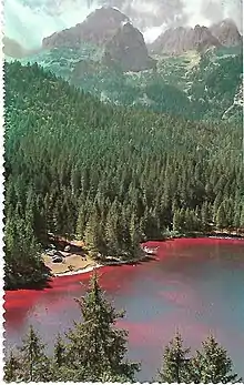 Les écrivains locaux qui ont décrit le lac au début du XIXe siècle, Jacopo Antonio Maffei en 1805[7] et Gioseffo Pinamonti en 1829[8], ne font aucune mention de la couleur inhabituelle de l'eau du lac, citant à la fois l'exceptionnel la qualité de l'omble qui y était pêché et décrivant d'autres légendes et curiosités, y compris celle qui, parfois, en hiver, le lac gelait si profondément qu'il pouvait passer dessus avec des charrettes.