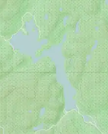 Sa forme comprend deux plans d'eau dont le principal épouse la forme de la péninsule de l'Italie, avec une longueur de 3,8 km dans l'axe nord-sud, et d'une largeur maximale de 0,65 km. Au nord-ouest, une passe d'environ 0,6 km le relie au second plan d'eau qui a une longueur de 1,5 km (du nord au sud) par 1,7 km (d'est en ouest). Ce 2e plan d'eau comporte trois grandes baies et une île.