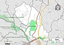 - les « grottes de la Forge et environs » (170 ha), couvrant 3 communes dont une dans la Dordogne et deux dans le Lot[14] ; seule une toute petite zone de moins d'un hectare concerne Lachapelle-Auzac, au nord-ouest du lieu-dit les Malherbes, en bordure de la route départementale 15[15] ;