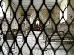 - Elle renferme d'importantes peintures murales du XIVe siècle consacrées à l'Annonciation, à la légende de Saint Eustache et réalisées sur un badigeon de chaux, lui-même posé sur un enduit composé de sable, de chaux et d’argile (environ par tiers). Le fond est de couleur crème, les pigments proviennent des terres dans plusieurs nuances d’ocre jaune et d’ocre rouge.