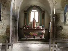 - L'église Notre-Dame, inscrite monument historique en 2011, comprend des parties de la nef initiale du XIe siècle, un chœur refait dans ses parties supérieures au XIIe siècle, ainsi qu'une petite chapelle au nord. Le clocher est refait au XIVe siècle, ainsi que sa base avec la construction de quatre arcades au tracé très aigu et d’une voûte d’ogives aux détails soignés[31]