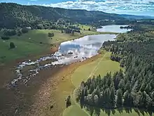 Le lac de Bellefontaine à gauche et le lac des Mortes à droite.