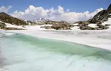 Vue d'un des lacs depuis l'est avec le chaînon de Comborsier à gauche. | |||