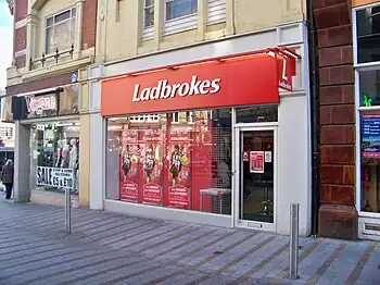 Elle est la plus grande société de paris en Grande-Bretagne voire du monde[réf. souhaitée] ; Ladbrokes possède plus de 2 200 boutiques de paris réparties entre la Grande-Bretagne, l'Irlande et la Belgique. Elle possède également plusieurs sites Web de paris en ligne, sur le sport, le poker en ligne ainsi que des sites de casino en ligne.