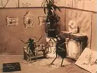 En 1909, Starewicz réalise des courts-métrages pour le musée ethnographique de Kovno dont il est cofondateur. Ces films portent sur des manifestations populaires dans la région et sur les insectes. Les deux facettes - ethnographique et entomologique - sont la marque de l’œuvre de Starewicz[3]. Passionné d’entomologie, il rêve de filmer un combat de scarabée. Ainsi naît La Lutte des cerfs-volants (Lucanus Cervus), son premier film d’animation image par image.