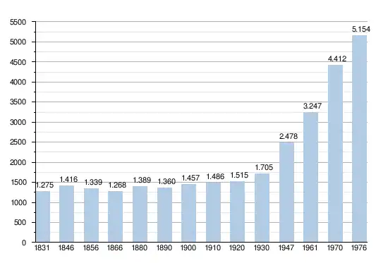 • Sources : INS, Rem. : 1831 jusqu'en 1970 = recensements, 1976 = nombre d'habitants au 31 décembre[6].