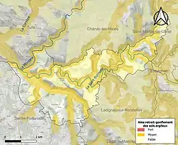 Le retrait-gonflement des sols argileux est susceptible d'engendrer des dommages importants aux bâtiments en cas d’alternance de périodes de sécheresse et de pluie. 48,2 % de la superficie communale est en aléa moyen ou fort (26,8 % au niveau départemental et 48,5 % au niveau national). Sur les 645 bâtiments dénombrés sur la commune en 2019, 371 sont en aléa moyen ou fort, soit 58 %, à comparer aux 36 % au niveau départemental et 54 % au niveau national. Une cartographie de l'exposition du territoire national au retrait gonflement des sols argileux est disponible sur le site du BRGM[22],[23].