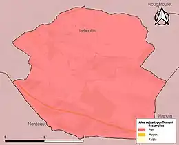 Le retrait-gonflement des sols argileux est susceptible d'engendrer des dommages importants aux bâtiments en cas d’alternance de périodes de sécheresse et de pluie. La totalité de la commune est en aléa moyen ou fort (94,5 % au niveau départemental et 48,5 % au niveau national). Sur les 111 bâtiments dénombrés sur la commune en 2019, 111 sont en aléa moyen ou fort, soit 100 %, à comparer aux 93 % au niveau départemental et 54 % au niveau national. Une cartographie de l'exposition du territoire national au retrait gonflement des sols argileux est disponible sur le site du BRGM[18],[Carte 3].