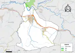 Carte de la ZNIEFF de type 2 de la commune.