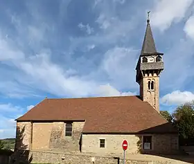 De style roman, l'église Saint-Antoine a été construite au XIe siècle. Classée à l'inventaire supplémentaire des Monuments historiques[20], cette église restaurée en 1988 et en 1990 possède un clocher singulier (collier de guet en bois, bretèche) reposant sur l'abside, remanié et fortifié au XVe siècle ; victime en d'une tempête et restauré en 2014, il abrite une cloche de 500 kg qui fut refondue et baptisée en 1850[21]. La nef romane de l'église a été élargie au XIXe siècle, côté nord.