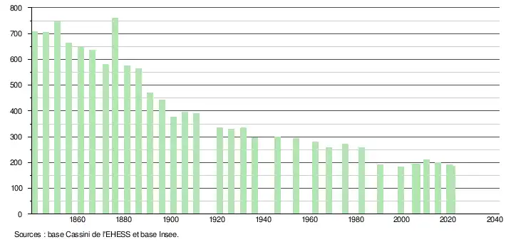 - Population municipale légale en vigueur au 1er janvier 2024, millésimée 2021, définie dans les limites territoriales en vigueur au 1er janvier 2023, date de référence statistique : 1er janvier 2021.