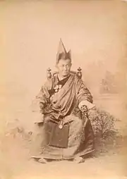 Le titre de lama (tibétain : བླ་མ་, Wylie : bla ma, contraction de bla na med pa, « insurpassable »[1],[2]) est donné à un enseignant religieux du bouddhisme tibétain[3]. Robert A. F. Thurman traduit lama par « mentor[4]. » D'une manière générale, le terme lama, qui s'utilise aussi en Occident, désigne un niveau de réalisation spirituelle avancé. Il s'applique à un enseignant considéré comme une source de la vérité qui libère[5]. Il y a des lamas moines et parfois des lamas nonnes; on trouve aussi des lamas laïques (en particulier dans le Nyingmapa): ils vivent à l'écart de leur temple local, mais se réunissent parfois pour la pratique de certains rituels[5].