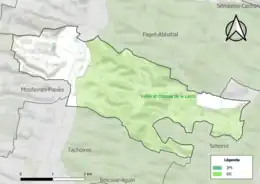 Carte de la ZNIEFF de type 2 sur la commune.
