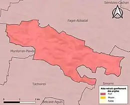 Le retrait-gonflement des sols argileux est susceptible d'engendrer des dommages importants aux bâtiments en cas d’alternance de périodes de sécheresse et de pluie. La totalité de la commune est en aléa moyen ou fort (94,5 % au niveau départemental et 48,5 % au niveau national). Sur les 43 bâtiments dénombrés sur la commune en 2019, 43 sont en aléa moyen ou fort, soit 100 %, à comparer aux 93 % au niveau départemental et 54 % au niveau national. Une cartographie de l'exposition du territoire national au retrait gonflement des sols argileux est disponible sur le site du BRGM[28],[Carte 3].