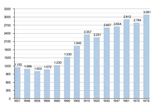 - Sources : INS, Rem. : 1831 jusqu'en 1970 = recensements, 1976 = nombre d'habitants au 31 décembre.