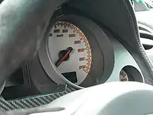 Une autre limite au concept de modèle « super-léger » réside dans la présence en série de freins classiques en fonte d’acier, le système en carbone/céramique demeurant une option. Plus « high-tech », et bien que proposant d’excellentes performances, ces derniers ne sont pourtant pas plus efficaces que les freins de série[10],[Note 3] mais ils procurent un gain de poids très net, grâce à leur densité deux fois moins élevée que celle de leurs homologues en acier[25]. Un gain de poids d’autant plus important qu’il s’agit de masse non suspendue et en rotation, générant donc une inertie importante et de l’effet gyroscopique[réf. nécessaire].