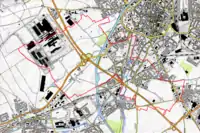 L'occupation des sols de la commune, telle qu'elle ressort de la base de données européenne d’occupation biophysique des sols Corine Land Cover (CLC), est marquée par l'importance des territoires agricoles (55,6 % en 2018), néanmoins en diminution par rapport à 1990 (61,6 %). La répartition détaillée en 2018 est la suivante : terres arables (39,3 %), zones urbanisées (24,4 %), zones industrielles ou commerciales et réseaux de communication (20 %), prairies (12,1 %), zones agricoles hétérogènes (4,2 %)[17]. L'évolution de l’occupation des sols de la commune et de ses infrastructures peut être observée sur les différentes représentations cartographiques du territoire : la carte de Cassini (XVIIIe siècle), la carte d'état-major (1820-1866) et les cartes ou photos aériennes de l'IGN pour la période actuelle (1950 à aujourd'hui)[Carte 1].