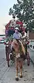 Panneau de bois peint au XIXe siècle avec éléphant et personnages portant des uniformes de puissances étrangères