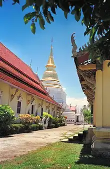 Wihan principal (salle d'assemblée de tous les croyants, religieux et laïcs) et Chedi principal (Stupa ; reliquaire)
