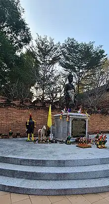 Mur d'enceinte, porte d'entrée, Wihan principal et Chedi principal (alignés sur un axe est-ouest de droite à gauche)